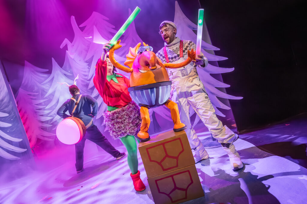 Our little theatre novice’s favourite bits included the fluorescent scenes, and dancing along to the Reindeer Rave with lyrics including “Gotta groove, Gotta move, Gotta dance, Gotta go and gift these pants!”. He also got very excited about the dog puppet in the show and was woofing back at him each time he appeared on stage.